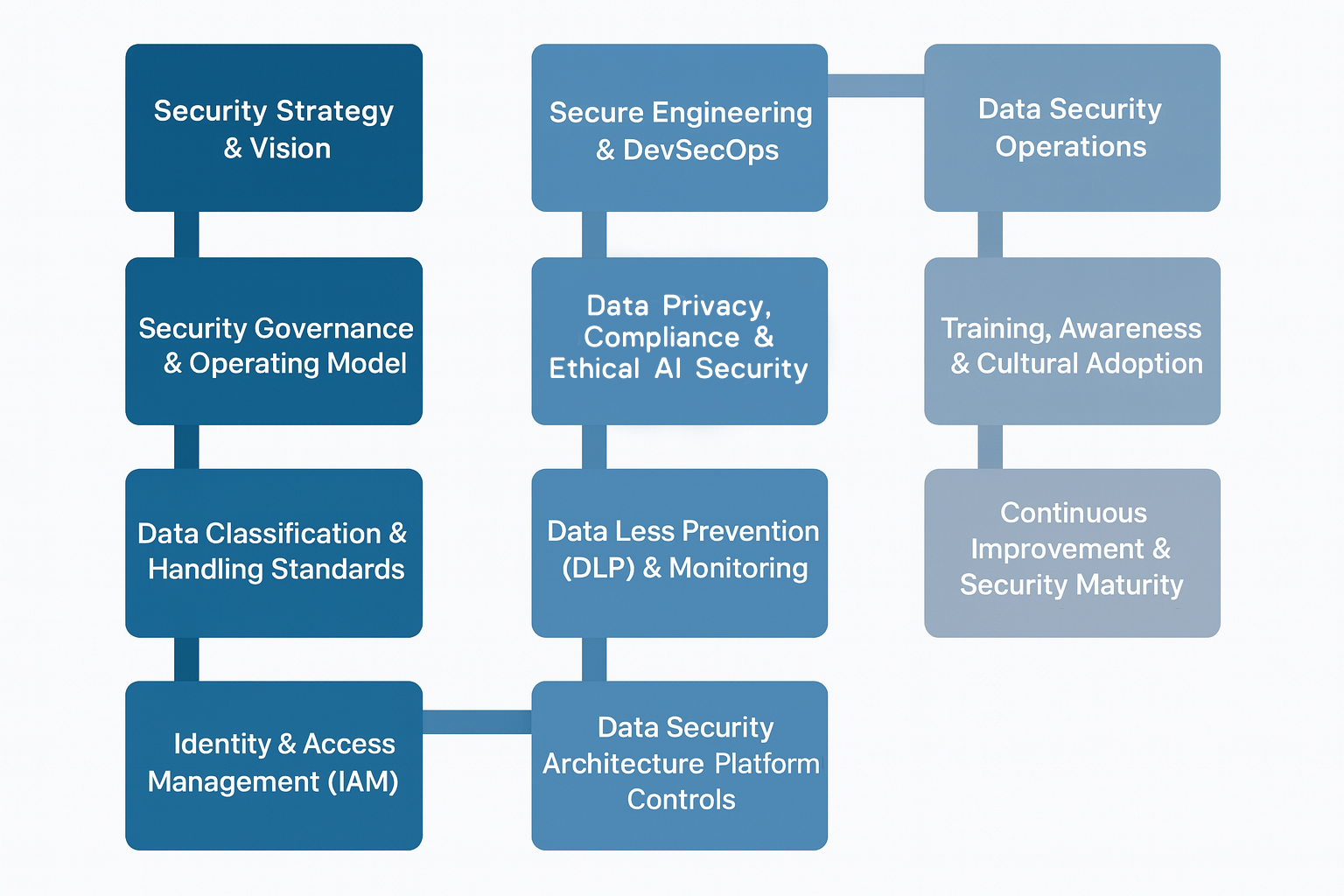 Clear accountability drives effective security. DDC builds a governance model that integrates business, technology, data teams, and compliance functions—ensuring consistent decision-making and secure operations across every domain.